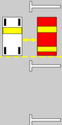 Зауставимо се и упалимо десни показивач правца. Вожњом уназад постављамо наш аутомобил у паралелан положај са паркираним возилом као на слици. Волан окренемо удесно до краја.